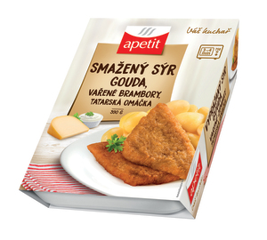 Smažený sýr gouda, vařené brambory, tatarská omáčka 390 g